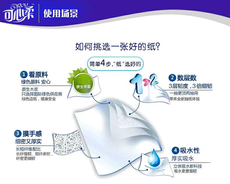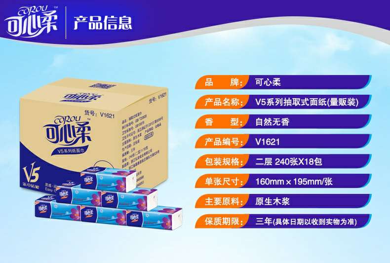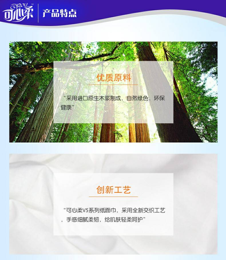 可心柔 V5系列CoRou云柔系列白色木浆40抽
